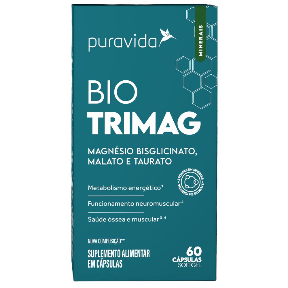 O Bio Trimag é um suplemento nutricional formulado com três formas nobres de magnésio - Bisglicinato, Malato e Taurato - para oferecer um suporte completo ao seu corpo, de forma eficiente e de alta absorção.