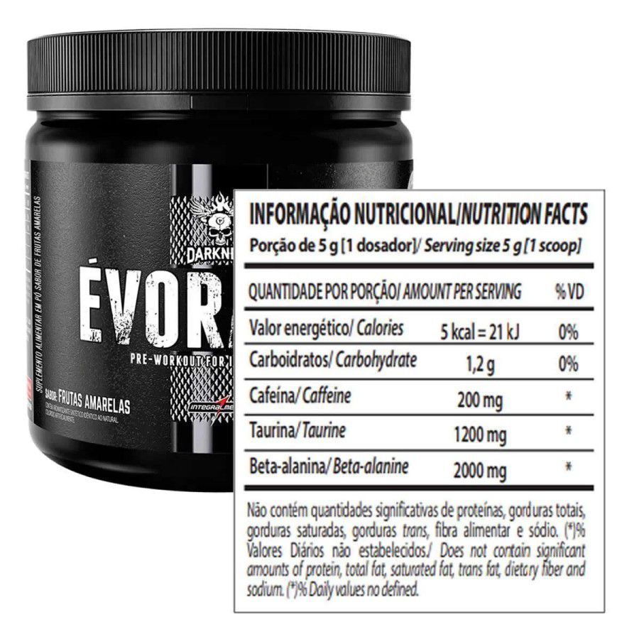 Évora Pw da Integralmédica é o novo pré-treino da linha Darkness, desenvolvido para favorecer a realização de treinos de força em alta intensidade. Sua fórmula contém ingredientes energéticos e neuro estimulantes capazes de criar as condições físicas adequadas à realização de treinos intensos, retardando o desgaste físico e mantendo o alerta mental até o fim da sessão de treinamento.